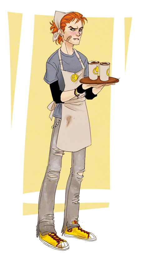 Maverick is tired of explaining why a guy like him is working as a barista in a coffee shop. He's tired of customers come in and look right through him into the kitchen as if to see if there's anyone else on duty, because sure as hell a guy like him can't be serving them coffee. Maverick admits he sort of looks like the kind of a guy who spits in their pretentious decaf lattes, but even if he does wear a look that radiates both boredom and hostility, he can do customer service. And most of the time he does. Maybe he doesn't make the best coffees in town or even in the block and he can't do fancy pictures with foaming milk (he's practicing hard, though!), but he owes Ramona enough not to undermine her business with acting like a jerk and so he feigns smiles and a sunny disposition very unbecoming of him.